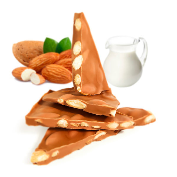 Ingredients: Sugar, cocoa butter, whole MILK powder, ALMONDS, shelled cocoa beans, water, emulsifier (E322), Madagascar vanilla