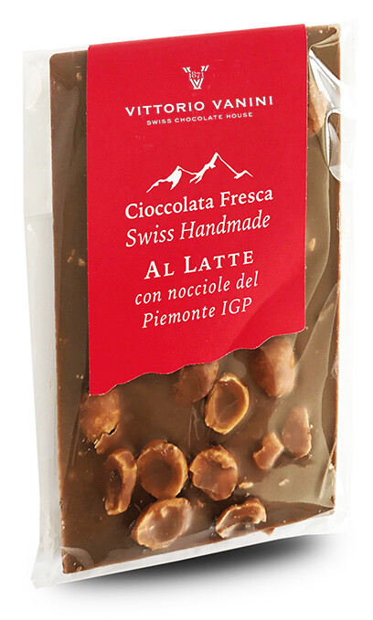 Chocolate con leche fresca con avellanas, 36% de cacao.